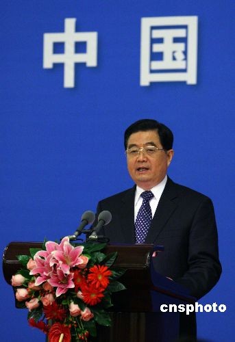 中國(guó)國(guó)家主席胡錦濤出席招待會(huì)并發(fā)表講話(huà)。