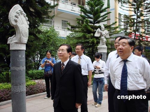 圖為中國(guó)法學(xué)會(huì)副會(huì)長(zhǎng)李清林(右)、廣西壯族自治區(qū)副主席高雄(左)出席開班典禮并參觀中國(guó)—東盟法律文化廣場(chǎng)。