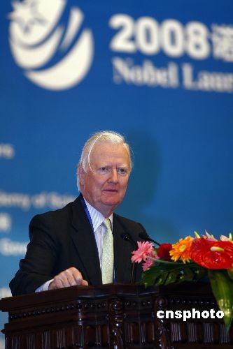 1996年獲得諾貝爾經(jīng)濟(jì)學(xué)獎獲得者詹姆斯-莫里斯教授在開幕式上致辭。