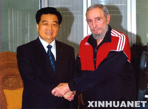 圖:胡錦濤在哈瓦那親切探望菲德爾·卡斯特羅