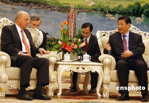 1月8日下午,中國國家副主席習近平在北京人民大會堂會見前來參加慶祝中美建交30周年活動的美國副國務卿內(nèi)格羅蓬特一行。中新社發(fā) 任晨鳴 攝