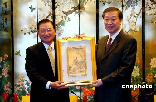 一月十日午間,江蘇省長羅志軍在南京會見臺灣;鶗麻L江丙坤,以及海協(xié)會與海基會聯(lián)合參訪團(tuán)一行。會見中,羅志軍希望臺商堅定在江蘇投資創(chuàng)業(yè)的信心。中新社發(fā) 丁梅 攝