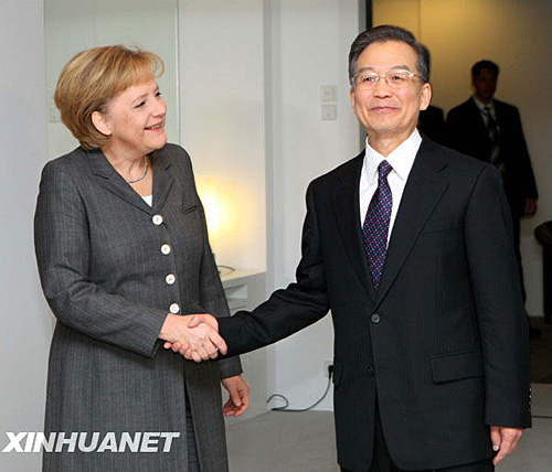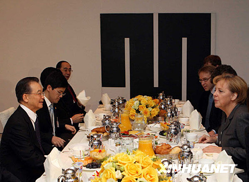 1月29日,正在德國進行正式訪問的中國國務(wù)院總理溫家寶,應(yīng)邀在柏林德國總理府與德國總理默克爾共進早餐。蘭紅光 攝
