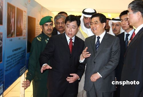 當?shù)貢r間2月11日上午,正在沙特進行國事訪問的中國國家主席胡錦濤,來到利雅得水泥公司,參觀由中材國際承建的水泥生產(chǎn)線項目。中新社發(fā) 齊彬 攝