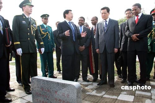 正在坦桑尼亞進(jìn)行國(guó)事訪問(wèn)的中國(guó)國(guó)家主席胡錦濤,二月十五日在坦桑尼亞總統(tǒng)基奎特陪同下,專程前往位于首都達(dá)累斯薩拉姆市郊的中國(guó)援坦專家公墓憑吊。圖為胡錦濤主席在靳成威烈士的墓前久久佇立,他動(dòng)情地說(shuō):“靳成威同志,我代表你的家屬來(lái)看你了!”中新社發(fā) 齊彬 攝