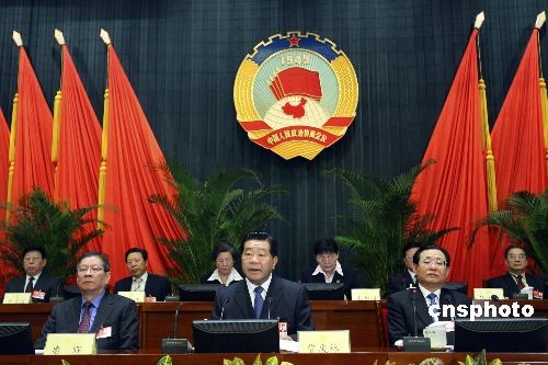 3月11日,全國政協(xié)第十一屆全國委員會(huì)常務(wù)委員會(huì)第五次會(huì)議在北京舉行,會(huì)議通過政協(xié)第十一屆全國委員會(huì)第二次會(huì)議關(guān)于常務(wù)委員會(huì)工作報(bào)告的決議(草案),審議通過政協(xié)第十一屆全國委員會(huì)提案委員會(huì)關(guān)于政協(xié)十一屆二次會(huì)議提案審查情況的報(bào)告(草案),通過政協(xié)第十一屆全國委員會(huì)第二次會(huì)議政治決議(草案)。全國政協(xié)主席賈慶林主持會(huì)議。 中新社發(fā) 盛佳鵬 攝