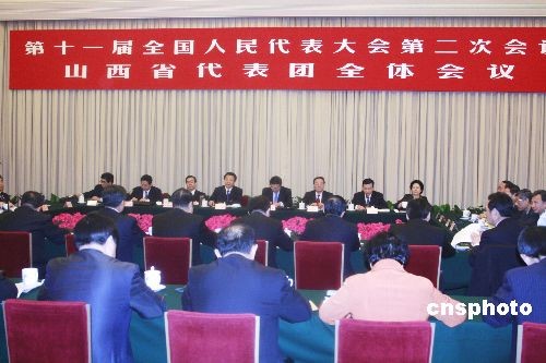 3月11日,參加十一屆全國人大二次會議的山西代表團(tuán)在人民大會堂舉行全體會議,討論全國兩高工作報(bào)告。中新社發(fā) 金立冬 攝