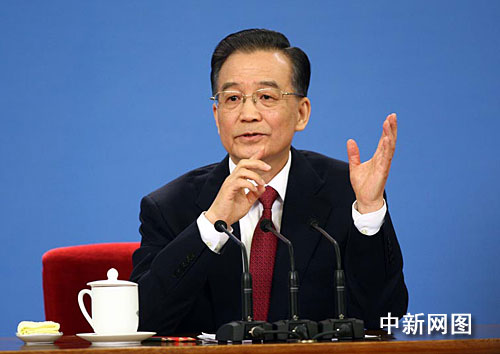 3月13日上午,溫家寶總理會(huì)見(jiàn)中外記者,并回答記者提問(wèn)。中新社記者 杜洋 攝
