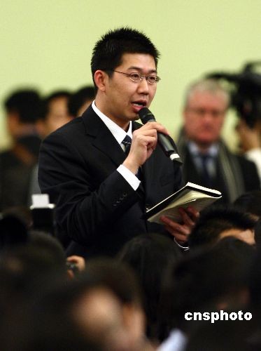 3月13日上午,溫家寶總理舉行中外記者招待會。中國新聞社記者、中國新聞網(wǎng)記者翁陽在發(fā)布會上向溫家寶總理提問。中新社發(fā) 杜洋 攝