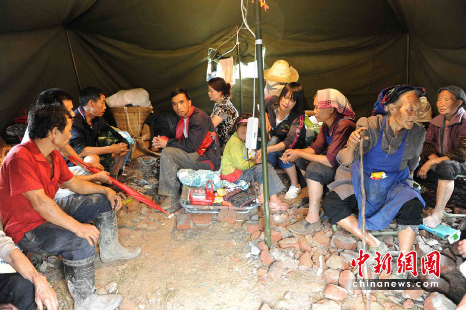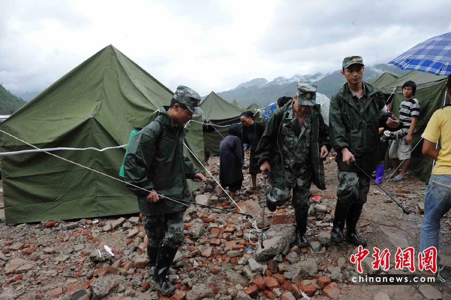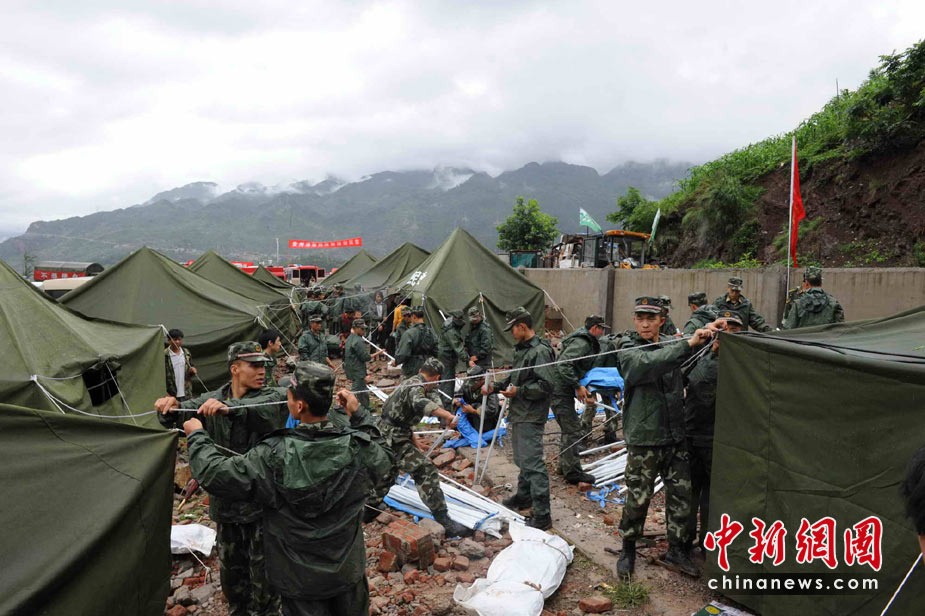 貴州關(guān)嶺滑坡 救援部隊為受災群眾搭建帳篷