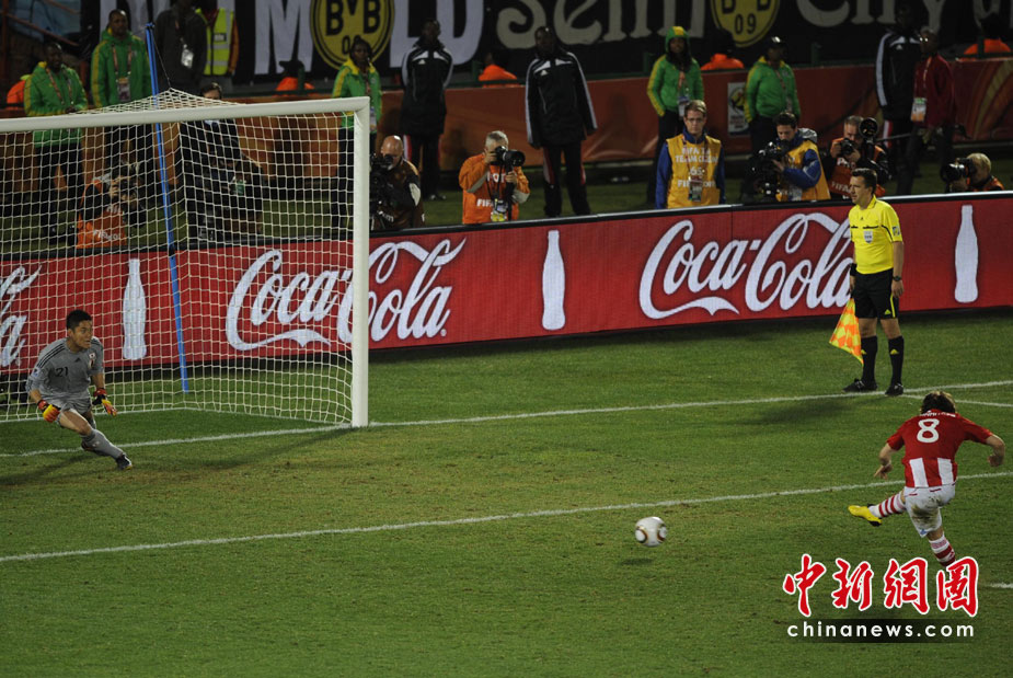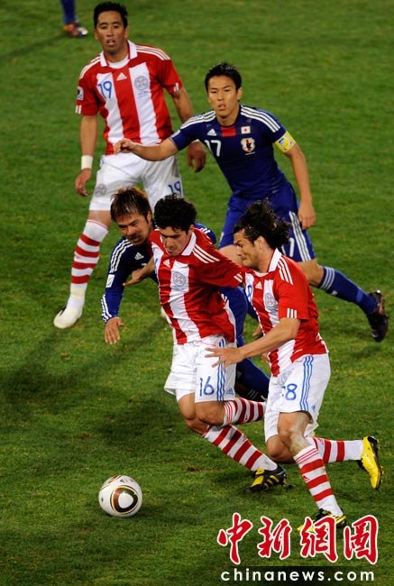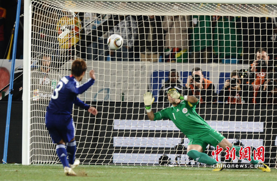 29日晚,南非世界杯1/8決賽第七場比賽比勒陀利亞的洛夫托斯球場拉開戰(zhàn)幕,由巴拉圭隊迎戰(zhàn)日本隊。120分鐘比賽結(jié)束時,雙方均沒有建樹,場上比分始終保持在0-0。在殘酷的點球大戰(zhàn)中,巴拉圭隊五罰全中,以5-3擊敗日本,挺進八強。