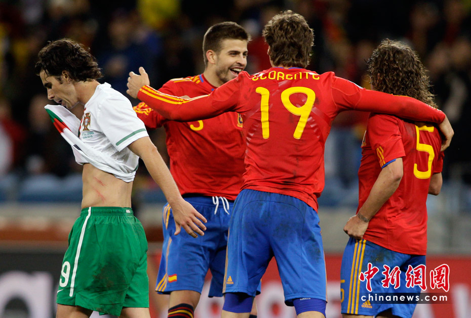 北京時間6月30日凌晨2:30,南非世界杯最后一場1/8決賽在開普敦綠點球場拉開戰(zhàn)幕,由西班牙隊迎戰(zhàn)葡萄牙。憑借比利亞在下半場第63分鐘的進(jìn)球,西班牙以1-0擊敗葡萄牙,昂首晉級八強。