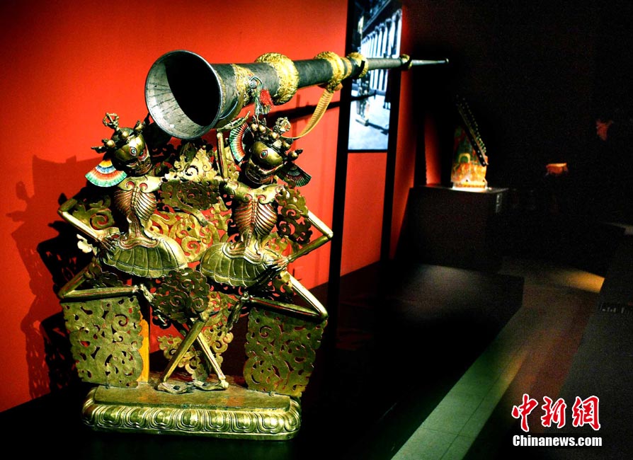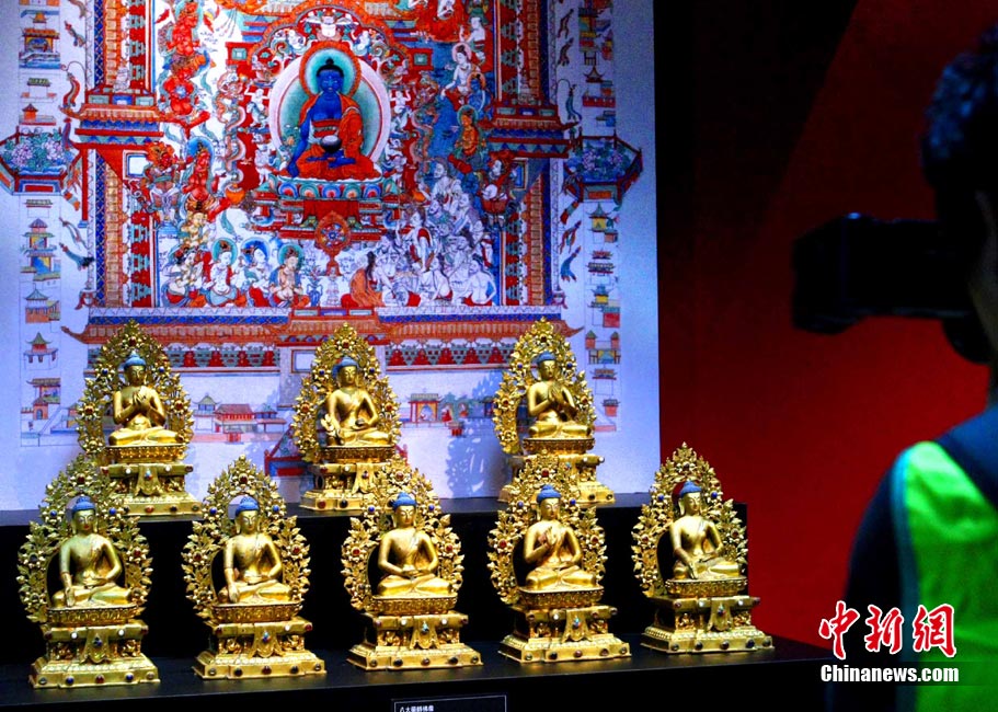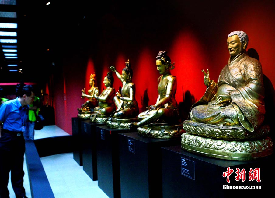 “圣地西藏---最接近天空的寶藏”特展,6月30日在臺(tái)灣故宮博物院揭開(kāi)面紗。這次展覽是臺(tái)灣歷年來(lái)規(guī)格最高、面向最完整的西藏文化與文物展,展出的130組件文物,來(lái)自西藏布達(dá)拉宮、羅布林卡等寺廟、西藏博物館、承德避暑山莊和北京民族文化宮等12處文物重鎮(zhèn)。整個(gè)展覽按“吐蕃王朝”、“金色寶藏”、“文化交流”、“雪域風(fēng)情”四部分布局展出,展覽9月19日結(jié)束。中新社記者 宋吉河攝