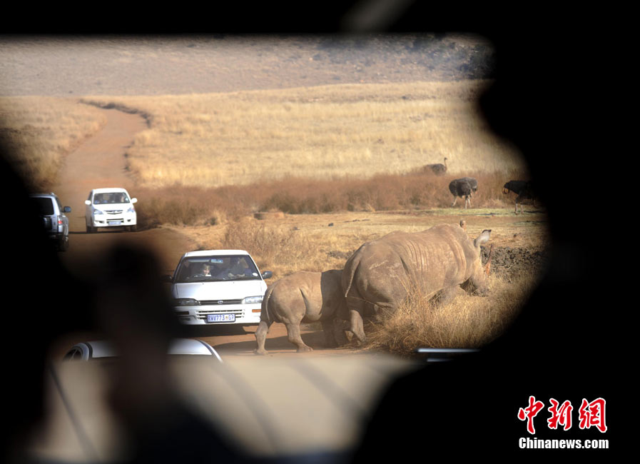 當(dāng)?shù)貢r間6月26日,記者前往南非豪登省獅子和犀牛公園,這里可近距離觀賞野生動物。中新社記者 廖攀 攝