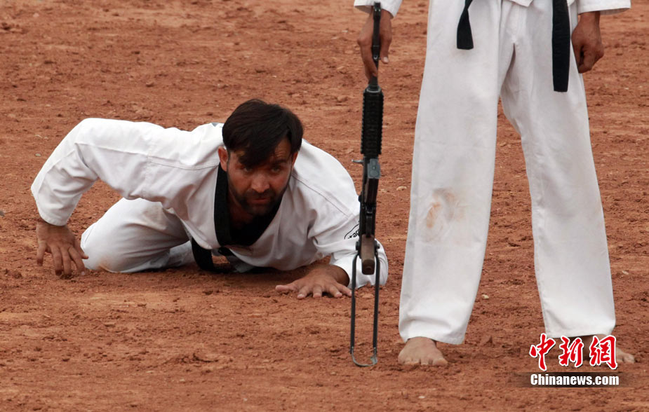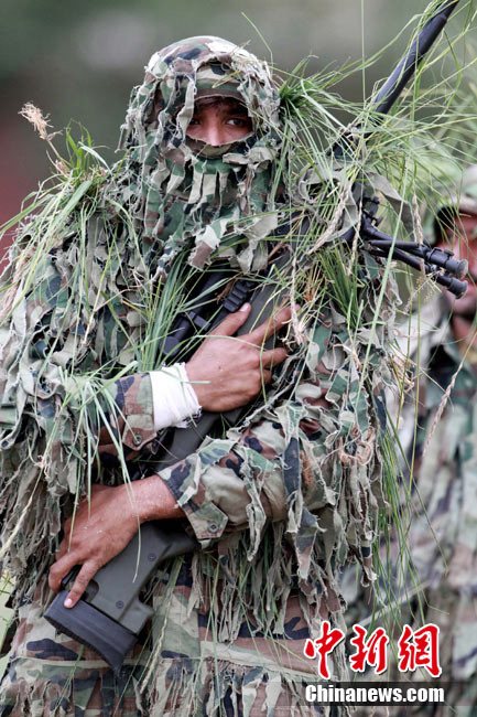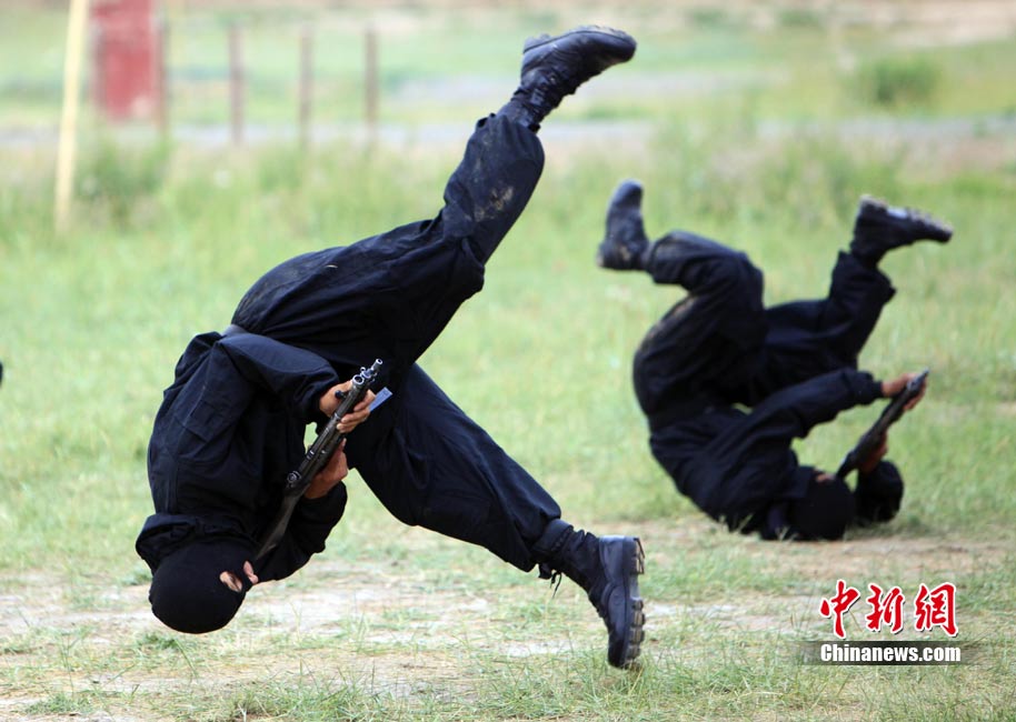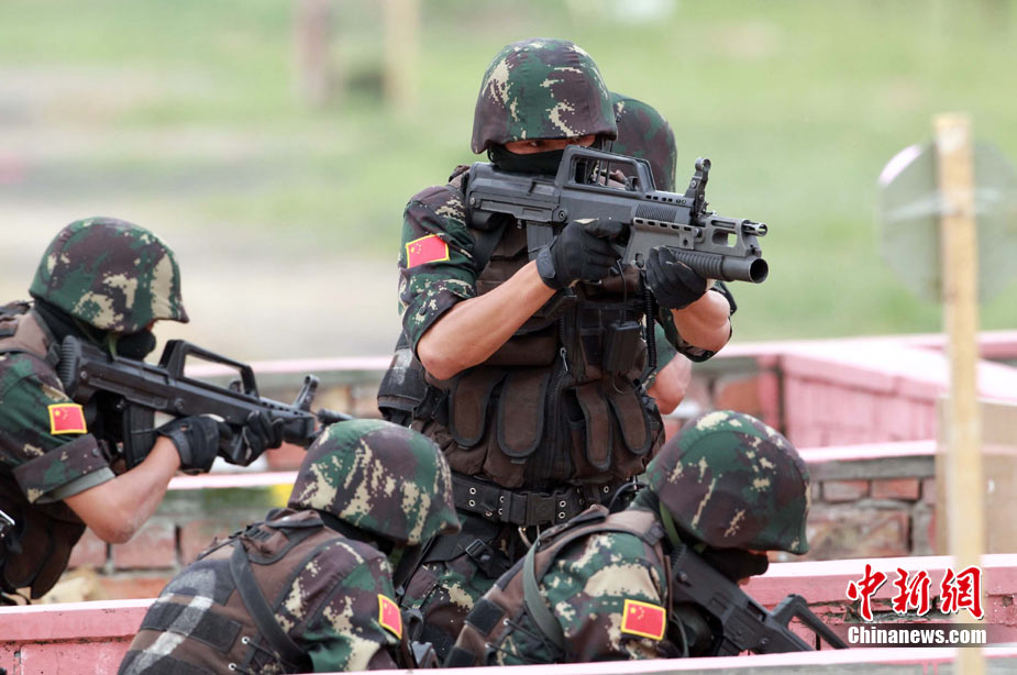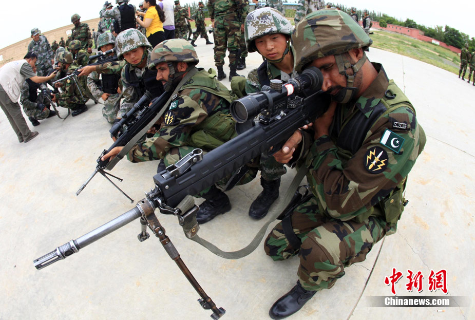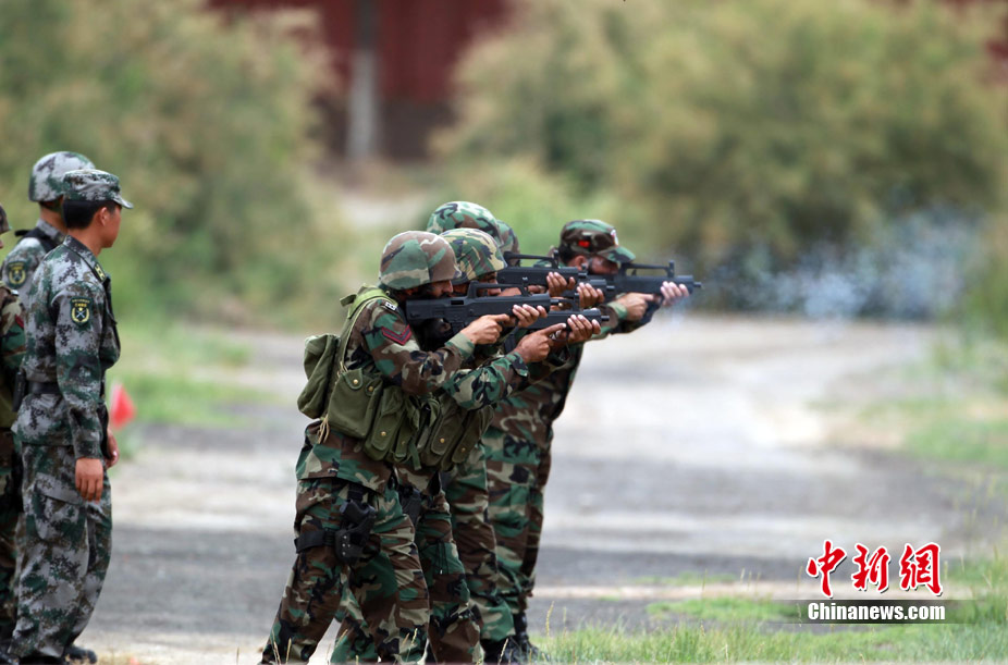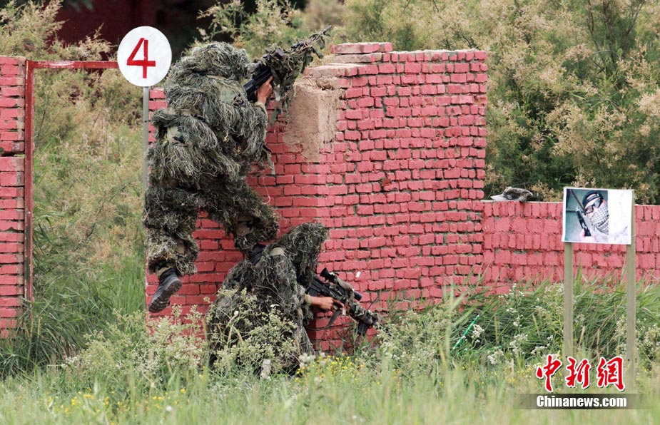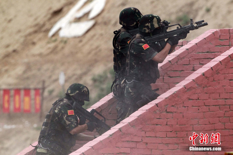 7月3日,代號“友誼—2010”的中國巴基斯坦反恐聯(lián)合訓練在中國寧夏青銅峽地區(qū)展開,此次訓練主要以邊境地區(qū)山地聯(lián)合反恐作戰(zhàn)為課題,分為展示交流、混編同訓、綜合演練三個階段。圖為中方反恐特種兵進行特種實彈射擊。 中新社發(fā) 杜洋 攝