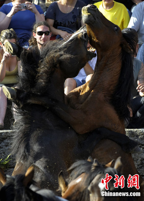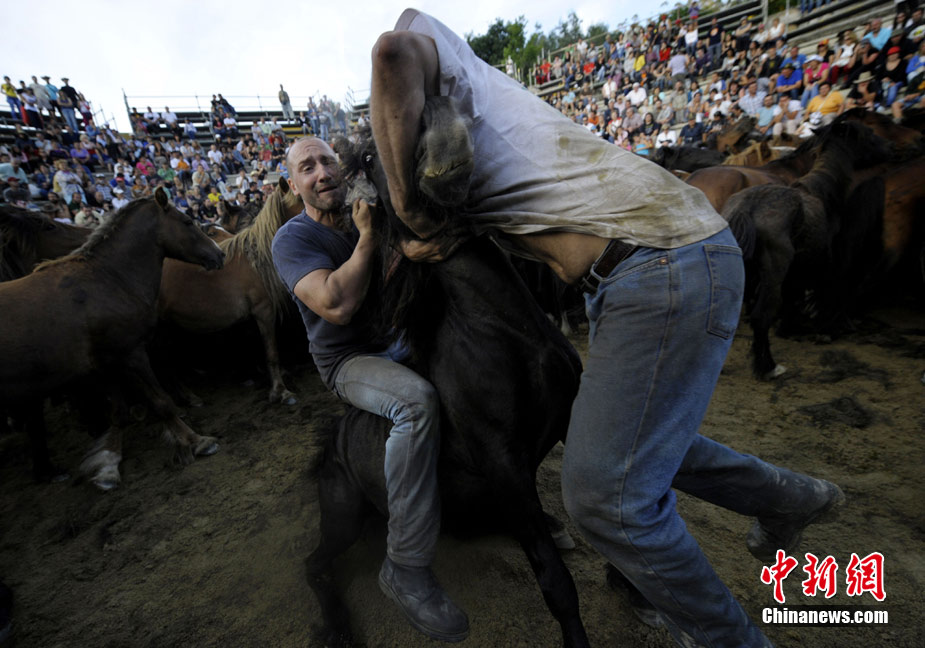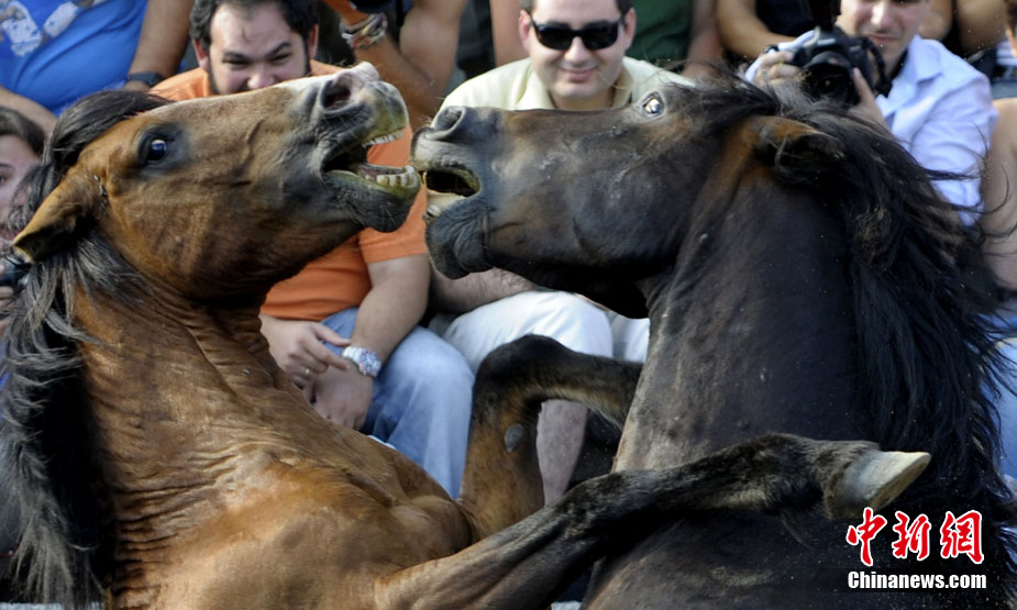 當(dāng)?shù)貢r間7月3日,西班牙薩武塞多,年輕人在傳統(tǒng)的“捕野馬節(jié)”上馴服野馬。作為古老的加利西亞節(jié)日,捕野馬節(jié)可以追溯到青銅時代的馴獸練習(xí)。