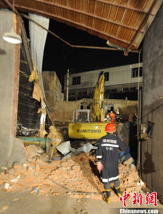 6日下午6時(shí)30分許,福州市倉(cāng)山區(qū)城門下董村一處三層磚混結(jié)構(gòu)的民房忽然倒塌,造成十幾名人員被埋,生命垂危。福州市消防支隊(duì)接到報(bào)警后,第一時(shí)間調(diào)集特勤、倉(cāng)山、臺(tái)江、戰(zhàn)勤保障大隊(duì)的8個(gè)中隊(duì),16部消防車,100多名消防官兵攜帶生命探測(cè)儀、搜救犬及大量救援裝備趕赴現(xiàn)場(chǎng)搜救。截至當(dāng)日12時(shí)許,消防官兵救出13人送往醫(yī)院搶救,3人搶救無效死亡。
