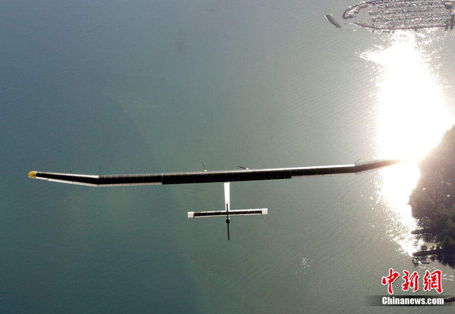 7月8日,太陽(yáng)能飛機(jī)“太陽(yáng)驅(qū)動(dòng)”在空中飛行。世界最大太陽(yáng)能飛機(jī)——瑞士制造的“太陽(yáng)驅(qū)動(dòng)”飛行26小時(shí)后,于當(dāng)?shù)貢r(shí)間8日9時(shí)在瑞士帕耶那機(jī)場(chǎng)降落,成功完成首次晝夜試飛。這是世界上首次進(jìn)行太陽(yáng)能飛機(jī)的夜間試飛。