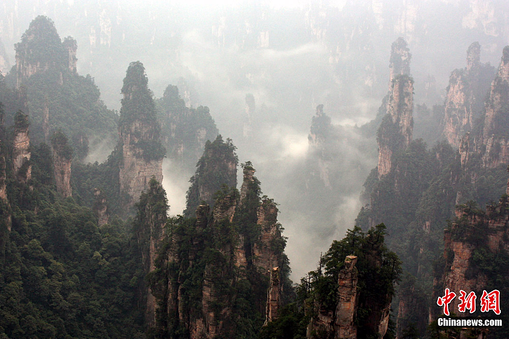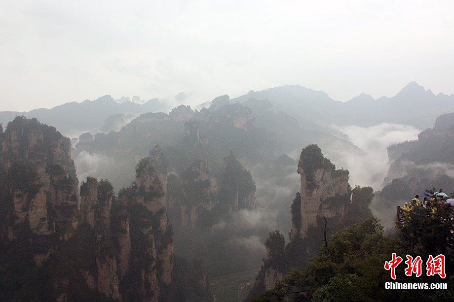 7月9日至12日連續(xù)不斷的大雨天氣,給在張家界觀光的中外游客帶來(lái)一些不便,但絲毫沒(méi)有影響游客的興致。雨中張家界形成的云海、瀑布風(fēng)景美輪美奐,蔚為壯觀,別具韻味,每天令上萬(wàn)名游客陶醉其中。鄧道理 攝