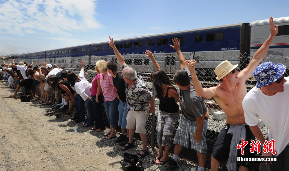 近日,美國加州南部一城市上萬人在火車鐵軌沿線站成排,背對著經(jīng)過的火車,脫褲子露出屁股。據(jù)悉,這是當(dāng)?shù)匾荒暌欢鹊奶厣?/p>