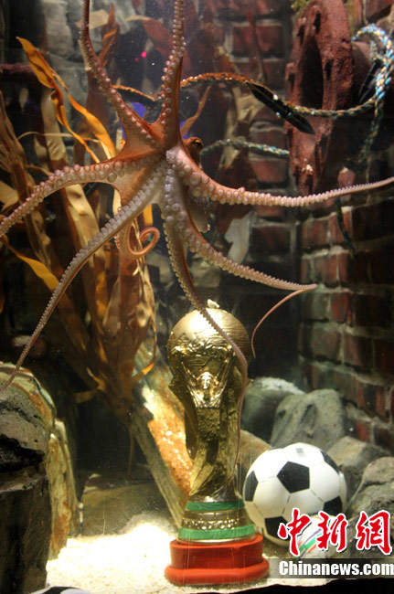 7月12日,德國水族館的工作人員給因?yàn)槌晒︻A(yù)測了德國隊(duì)的全部七場比賽以及決賽結(jié)果的神奇章魚保羅頒發(fā)了“大力神杯”,據(jù)說保羅要激流勇退,未來不再出手對任何事情預(yù)測了。