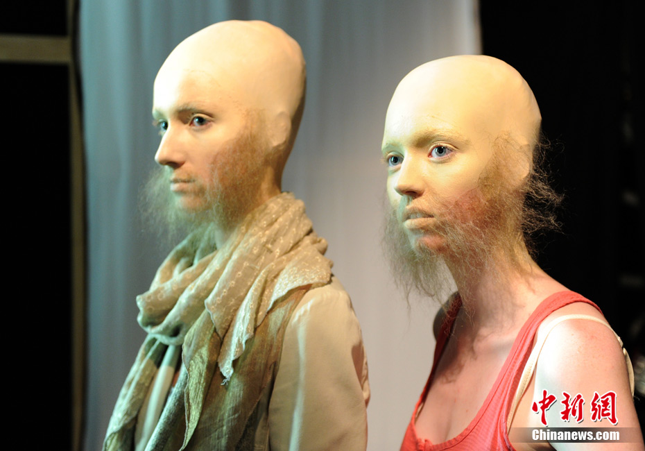時(shí)尚可以美到讓人窒息,也可以雷人到讓人無(wú)語(yǔ)……柏林時(shí)裝周上,設(shè)計(jì)師Patrick Mohr引入了新的審美觀,美麗的女模特們一律是光頭和張飛一般的胡須造型,非常之震撼!