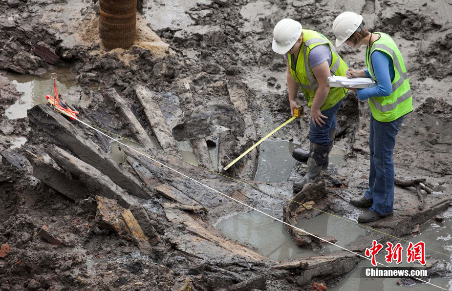 近日,美國(guó)紐約世貿(mào)中心遺址發(fā)現(xiàn)了一艘據(jù)信是18世紀(jì)的古船殘骸。報(bào)道稱,正在當(dāng)?shù)匦藿ㄐ率蕾Q(mào)大樓的建筑工人意外發(fā)現(xiàn)了這艘古船?脊艑W(xué)家表示,這艘長(zhǎng)約32英尺的古船可能是當(dāng)年用來運(yùn)料填充哈德遜河。