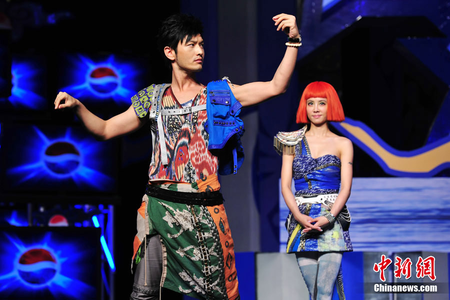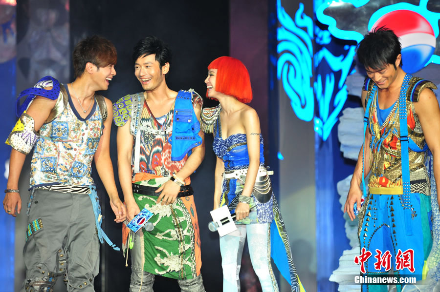7月21日,國際某飲料巨頭在北京召開新聞發(fā)布會,最新主題廣告震撼首播。古天樂、羅志祥、黃曉明、蔡依林身著華麗戰(zhàn)袍駕駛戰(zhàn)車亮相,他們以師兄弟的身份打造全新“西游記”,“世界小姐選美大賽冠軍”張梓琳更是以蜘蛛精身份出演。中新社記者 富田 李學(xué)仕 攝