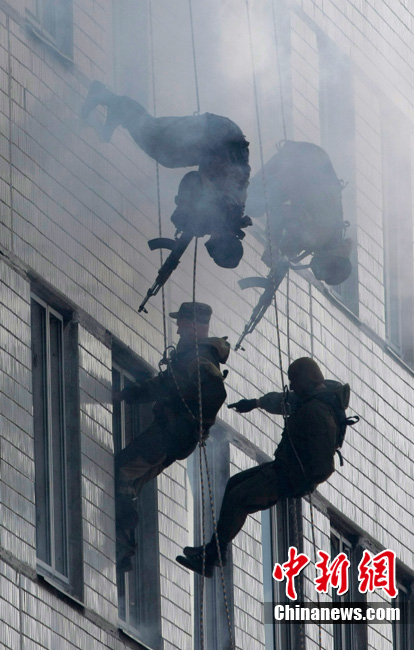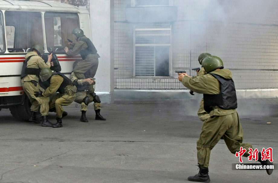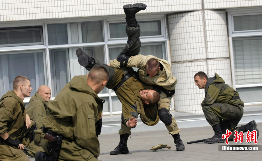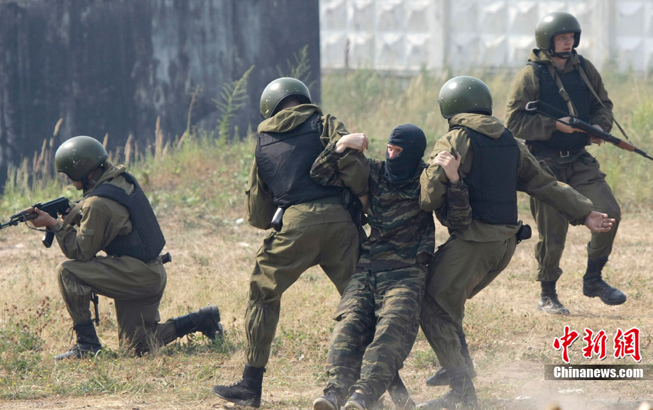 當(dāng)?shù)貢r(shí)間7月28日,俄羅斯特別部隊(duì)(內(nèi)務(wù)部特種部隊(duì))士兵在莫斯科郊區(qū)公開展示了其訓(xùn)練成果和戰(zhàn)斗技能。