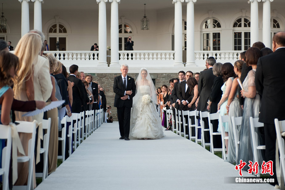 7月31日,紐約萊茵貝克,美國前總統(tǒng)克林頓的女兒切爾西的婚禮當(dāng)日在阿托莊園舉行。 傳媒猜測這次世紀(jì)大婚要300萬至500萬美元埋單。