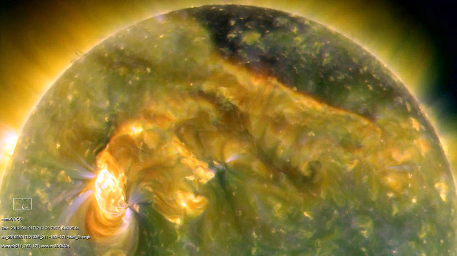 據(jù)英國媒體2日報道,各國天文臺近日觀測到太陽表面發(fā)生劇烈的太陽風暴,科學家預測,攜帶大量帶電粒子的太陽風預計于4日抵達地球,在兩極產生強烈的極光現(xiàn)象。圖為8月3日,NASA公布了太陽動力學觀測衛(wèi)星(SDO)1日通過極紫外線相機拍攝到的太陽北半球耀斑爆發(fā),耀斑下的太陽黑子足有地球大小。(NASA圖)