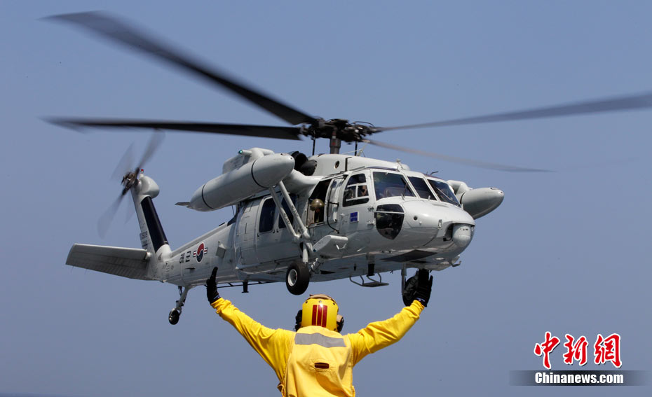 8月5日,韓國海軍艦艇和直升機(jī)參加在朝鮮半島西部的韓國海域單獨(dú)舉行的反潛演習(xí)。