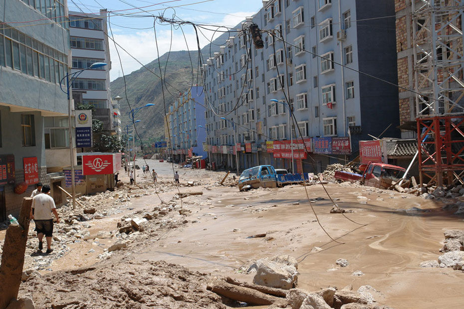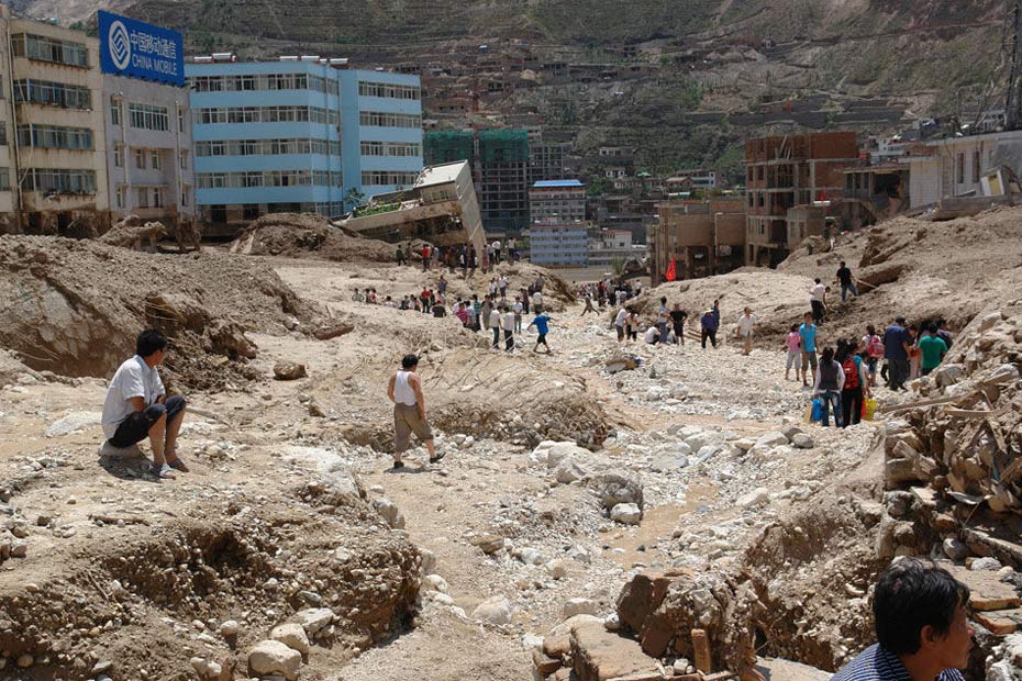 8月7日22時(shí)許,甘南藏族自治州舟曲縣突降強(qiáng)降雨,縣城北面的羅家峪、三眼峪泥石流下泄,由北向南沖向縣城,造成沿河房屋被沖毀,泥石流阻斷白龍江、形成堰塞湖。截至當(dāng)日16時(shí)統(tǒng)計(jì),泥石流災(zāi)害已造成127人死亡,76人受傷,近2000人失蹤,緊急轉(zhuǎn)移安置4.5萬人,倒塌房屋120余戶300余間。圖片來源 新華網(wǎng)