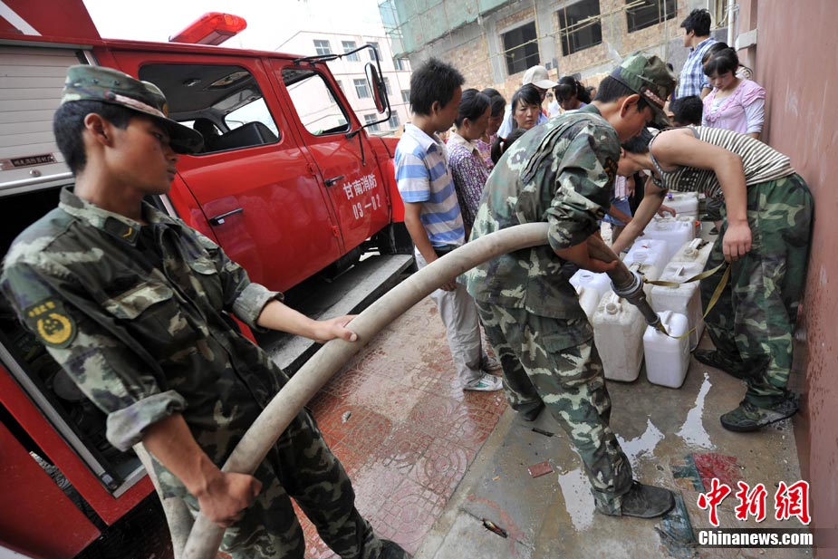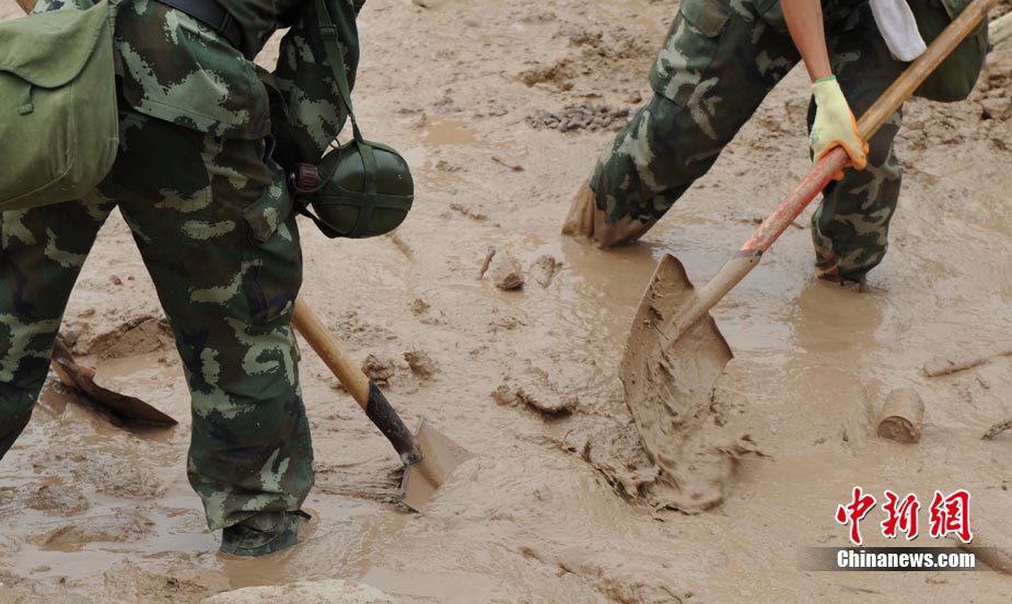 8月11日上午9時40分,蘭州軍區(qū)某集團(tuán)軍“開山斧工兵團(tuán)”對舟曲堰塞湖堰塞體成功實(shí)施第12次爆破。爆破后河道明顯出現(xiàn)斜坡,江水下泄速度明顯加快。圖為堰塞體12次爆破現(xiàn)場。中新社發(fā) 劉忠俊 攝