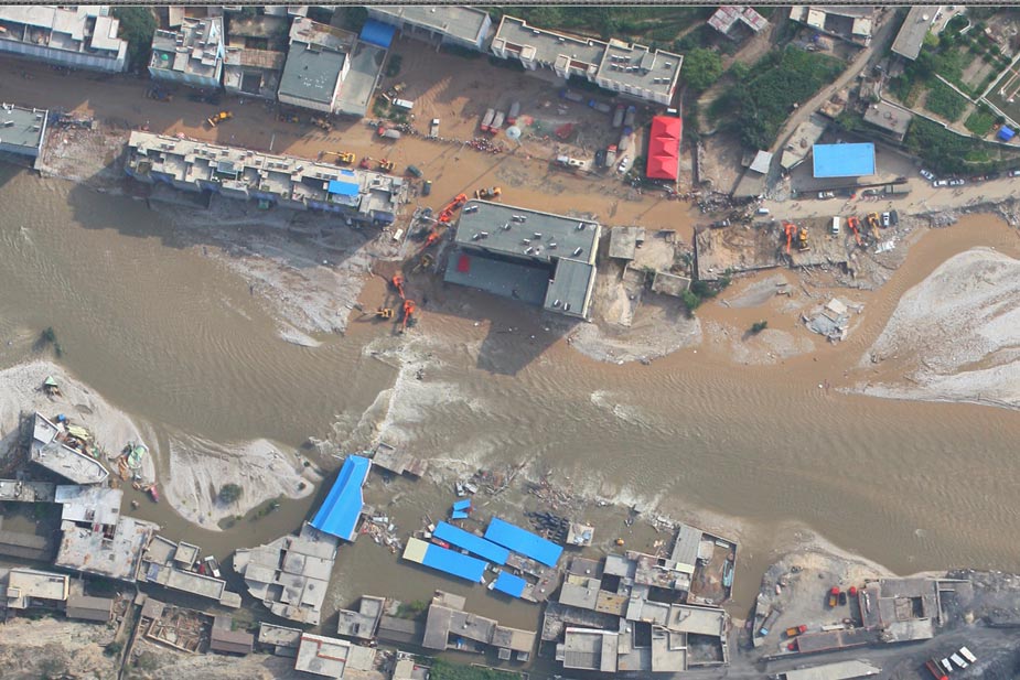 當晚10點,中國測繪科學研究院技術人員利用高分辨率遙感影像數(shù)據(jù)一體化測圖系統(tǒng)PIXELGIRD,對無人飛機獲取的數(shù)據(jù)連夜進行鑲嵌、拼接、糾正,獲取了災區(qū)高分辨率影像數(shù)據(jù)。國家基礎地理信息中心以最快速度,運用軟件將這些抽象的數(shù)據(jù)“變”為直觀的地圖,迅速提供給決策機構和相關部門,供災后重建規(guī)劃和建設使用。