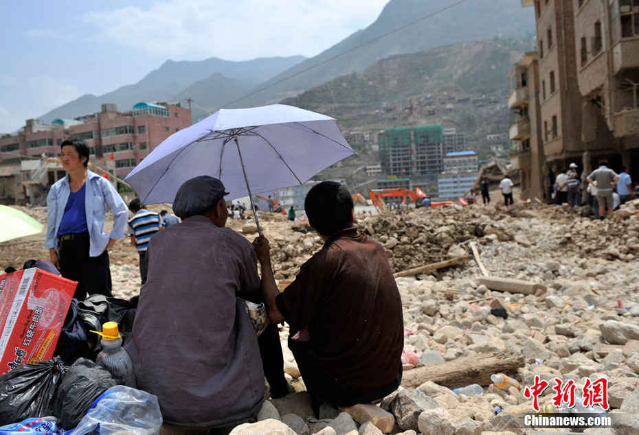 2010年8月11日,甘肅舟曲縣發(fā)生特大泥石流災(zāi)害后的第四天,救援工作仍在繼續(xù)。截至10日17時(shí),泥石流災(zāi)害死亡人數(shù)已達(dá)702人,失蹤人員1042人,42人重傷。隨著救援工作的緊張進(jìn)行,許多受災(zāi)民眾在自己的家園附近苦苦守望,希望親人奇跡生還,希望給逝者最后的尊嚴(yán)。中新網(wǎng)記者 金碩 攝