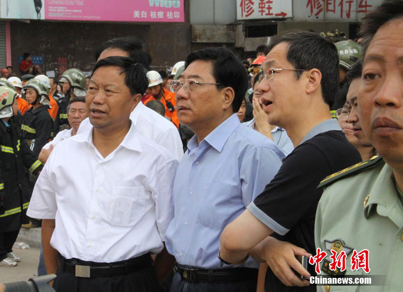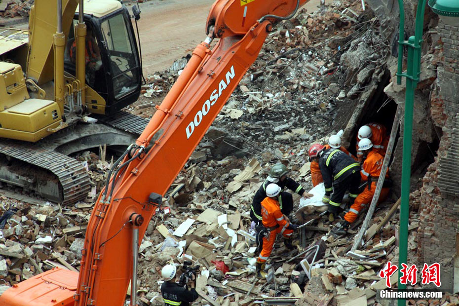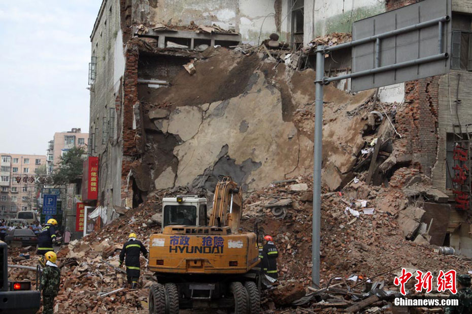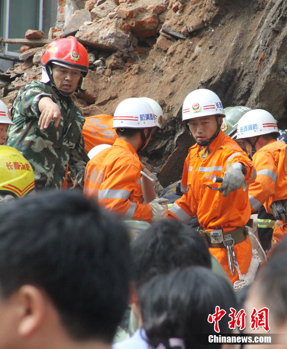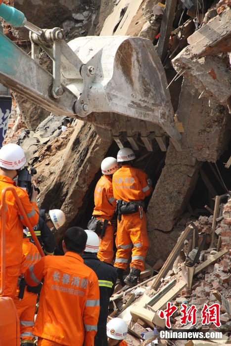 中新網(wǎng)長(zhǎng)春8月12日電 (崔顏鋒 張?zhí)旎ⅲ?2日5時(shí)30分左右,位于長(zhǎng)春市長(zhǎng)春大街和大經(jīng)路交匯處的一棟老樓突然倒塌,目前已知有4人被埋在瓦礫中。截至上午10時(shí)50分,已有一人獲救,還有一人被發(fā)現(xiàn),但據(jù)稱已經(jīng)死亡。目前,救援人員正在繼續(xù)進(jìn)行搜救。圖為救援人員在現(xiàn)場(chǎng)搜救。 張策 攝