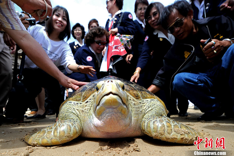 12日是泰國(guó)王后詩麗吉的78歲生日,泰國(guó)各地紛紛舉行活動(dòng)慶祝王后生日。圖為一家海龜保護(hù)中心,專門舉行活動(dòng)將700多只海龜放歸海洋,為慶祝泰國(guó)王后生日。