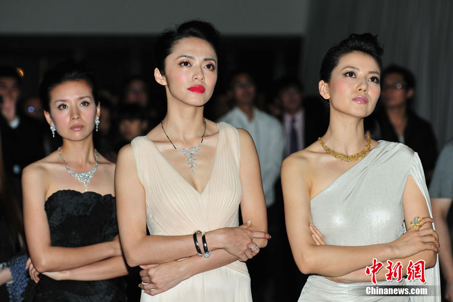 8月12日晚,永恒印記“Shining Light”鉆飾設(shè)計(jì)大賽獲獎(jiǎng)作品全球首展在北京舉行。30位來(lái)自南部非洲的年輕設(shè)計(jì)師以25000顆總重達(dá)630克拉的美鉆向世界展示了他們?cè)阢@石設(shè)計(jì)領(lǐng)域的極致才華。姚晨(中)、高圓圓(右)、董潔等藝人盛裝前來(lái)助陣。中新社發(fā) 李學(xué)仕 攝