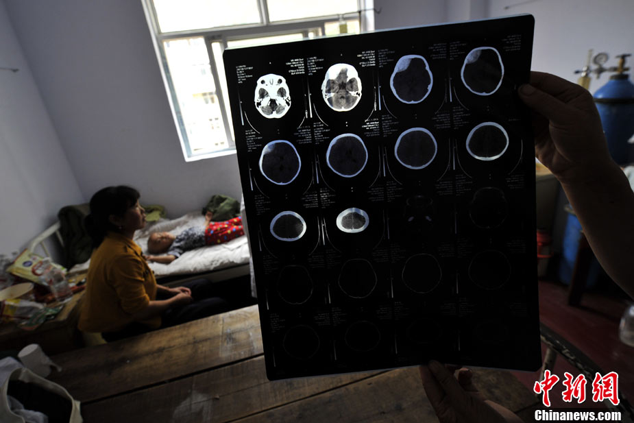 李艷菲有雙非常明亮的眸子,時常定定地看著一個地方出神。媽媽薛紅芳這幾天眼睛已經(jīng)哭腫了,一看見女兒額頭上的瘀傷就淚水漣漣。丈夫外出打工趕不回來,這個受了驚嚇的女人顯得有些手足無措。7日晚孩子跌傷后,薛紅芳和婆婆跌跌撞撞連夜將孩子送到縣醫(yī)院,可這時醫(yī)院已經(jīng)斷電陷入混亂。在驚恐中等了一夜,孩子終于住進了病房里。