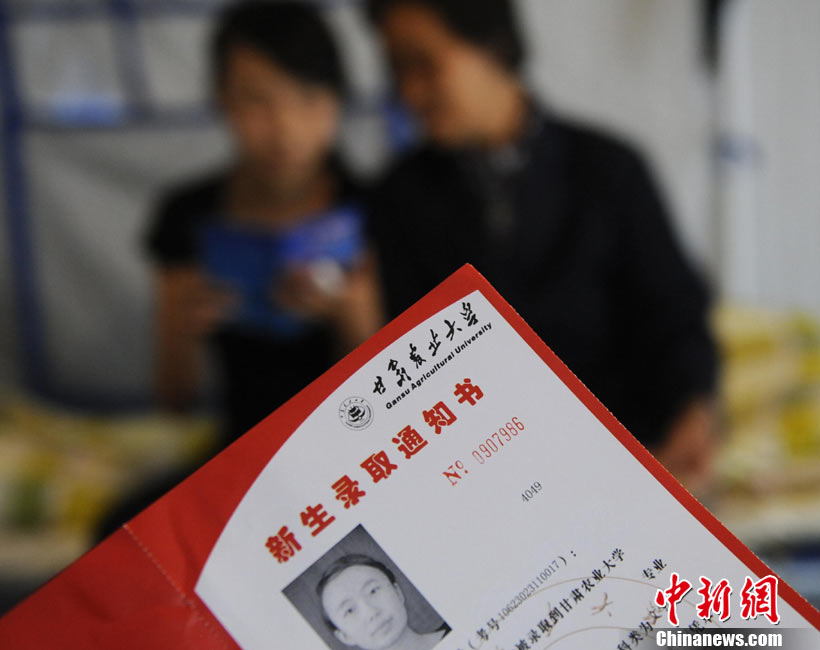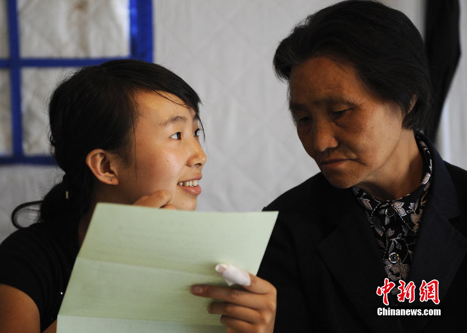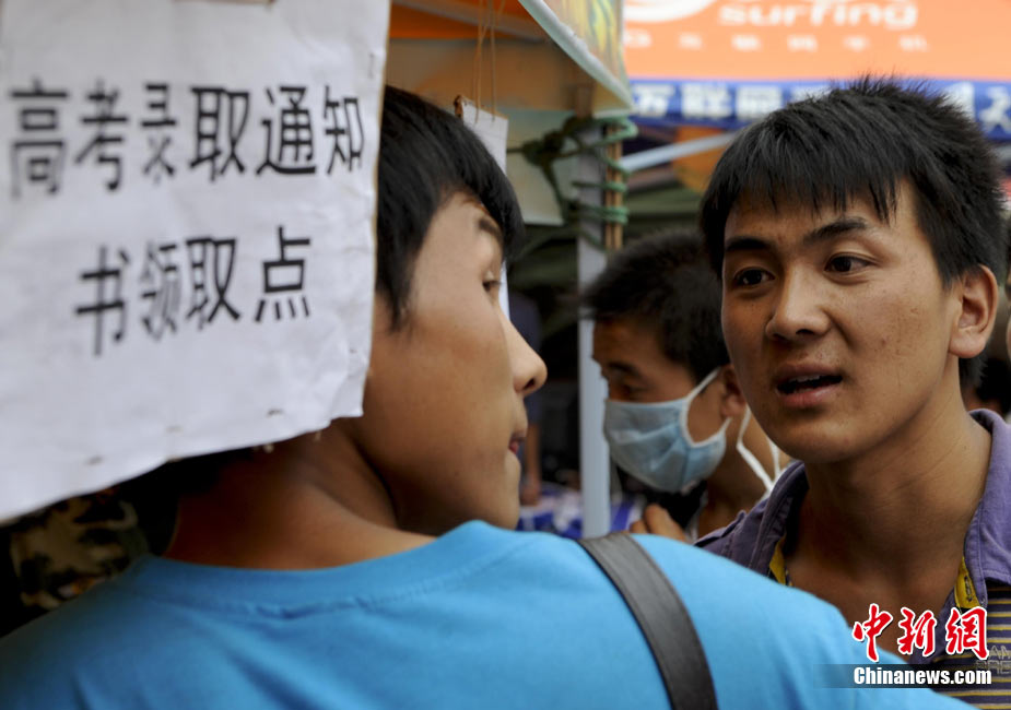 8月14日,甘肅舟曲災(zāi)區(qū)的高考錄取通知書正在發(fā)放過程中,學(xué)生們接過火紅色的錄取通知書信封,眼里有藏不住的笑意。然而,有一些通知書卻永遠(yuǎn)無法發(fā)出了。截至上午10點(diǎn)30分,舟曲一中收發(fā)室當(dāng)天共發(fā)出7份錄取通知書,還有30多封正等待領(lǐng)取。中新社發(fā) 廖攀 攝
