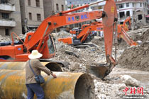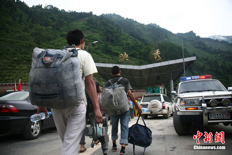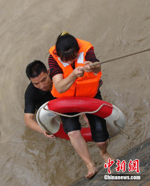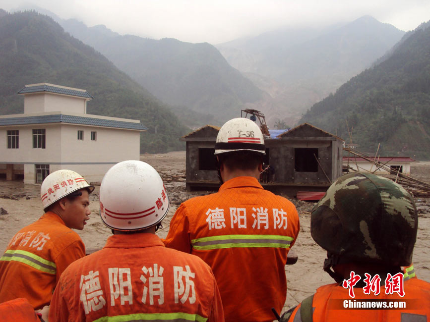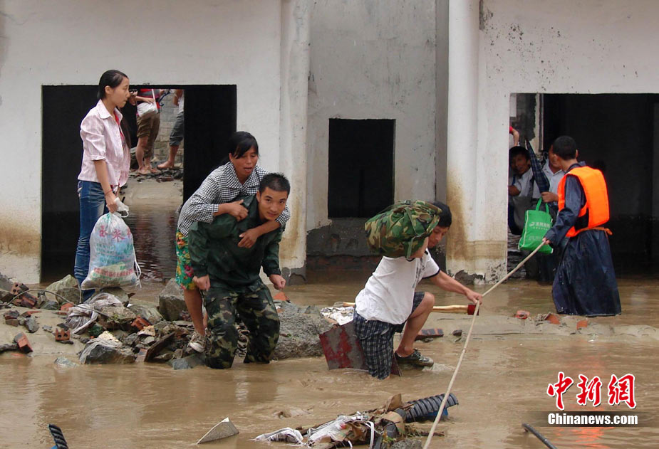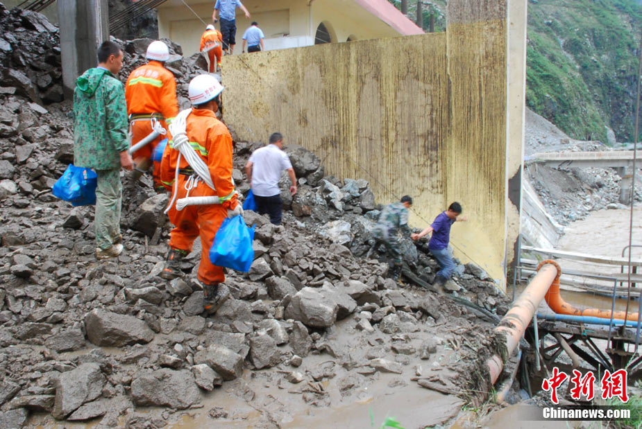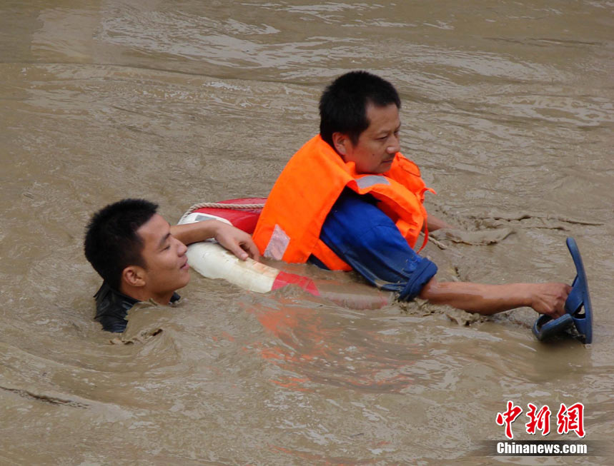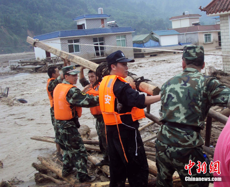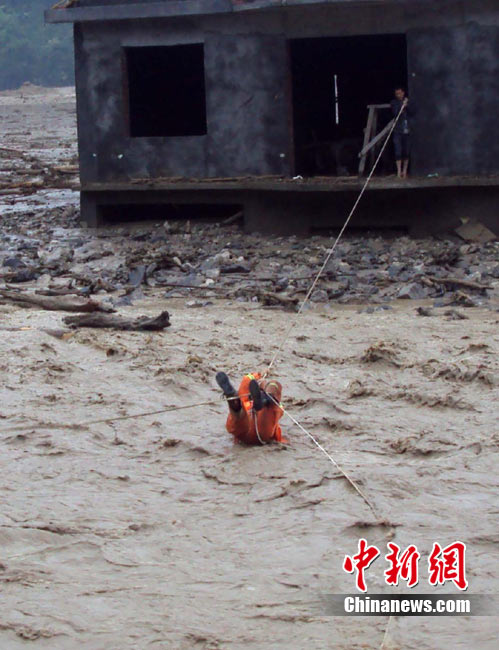 8月14日,四川德陽綿竹市清平、天池等山區(qū)遭遇暴雨泥石流襲擊,災(zāi)害發(fā)生后,德陽消防出動車輛20臺次,消防官兵123人次,從各類災(zāi)害事故中營救被困群眾26人,疏散群眾18人。圖為公安、消防、武警聯(lián)手營救被困村民。中新社發(fā) 沈消軒 攝