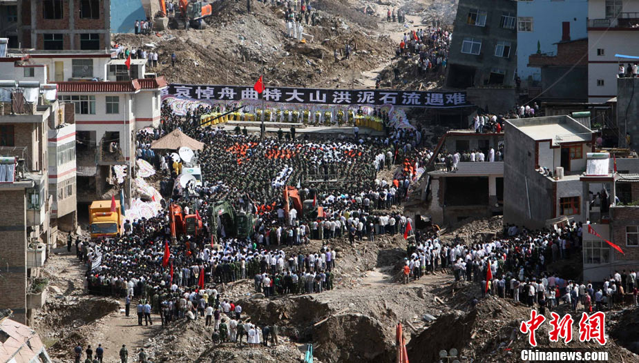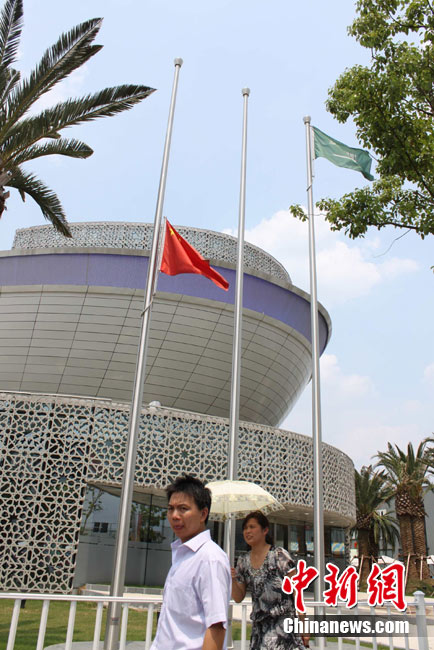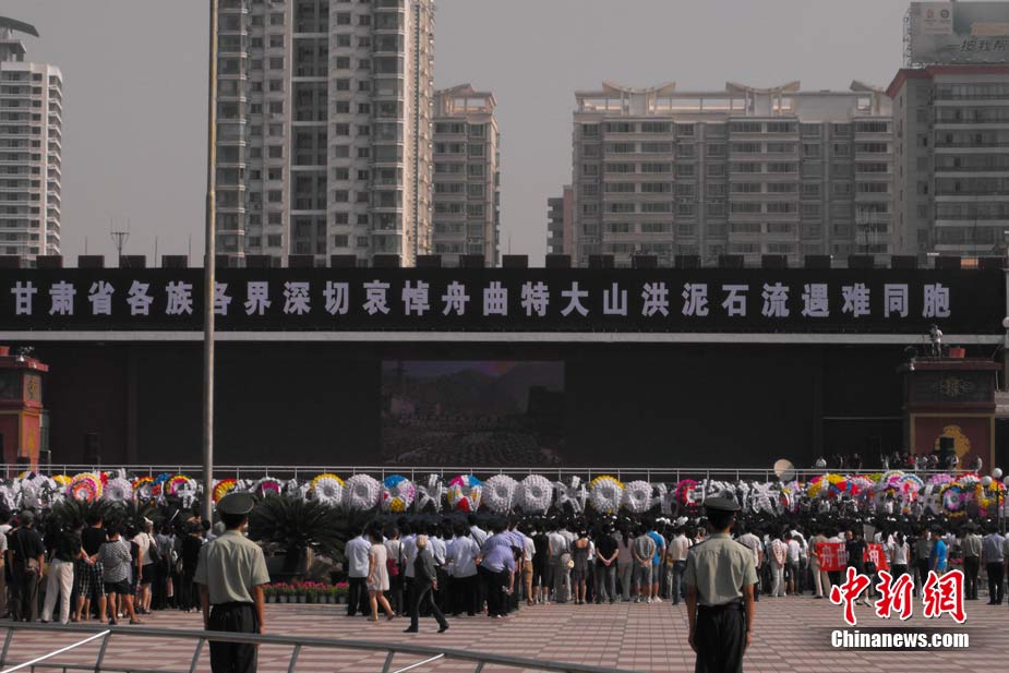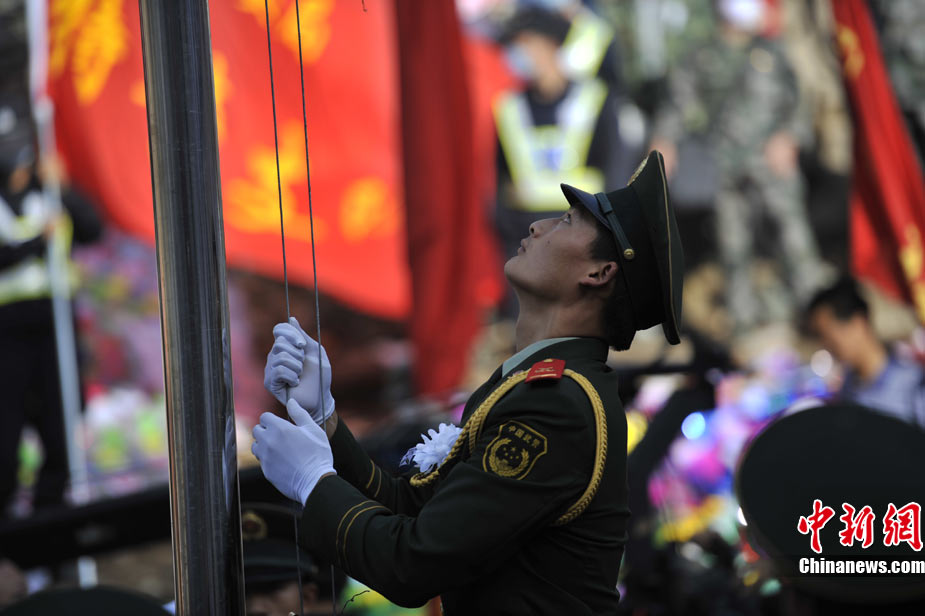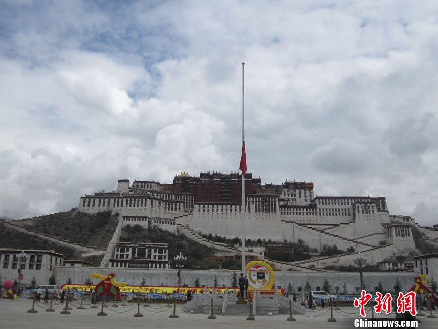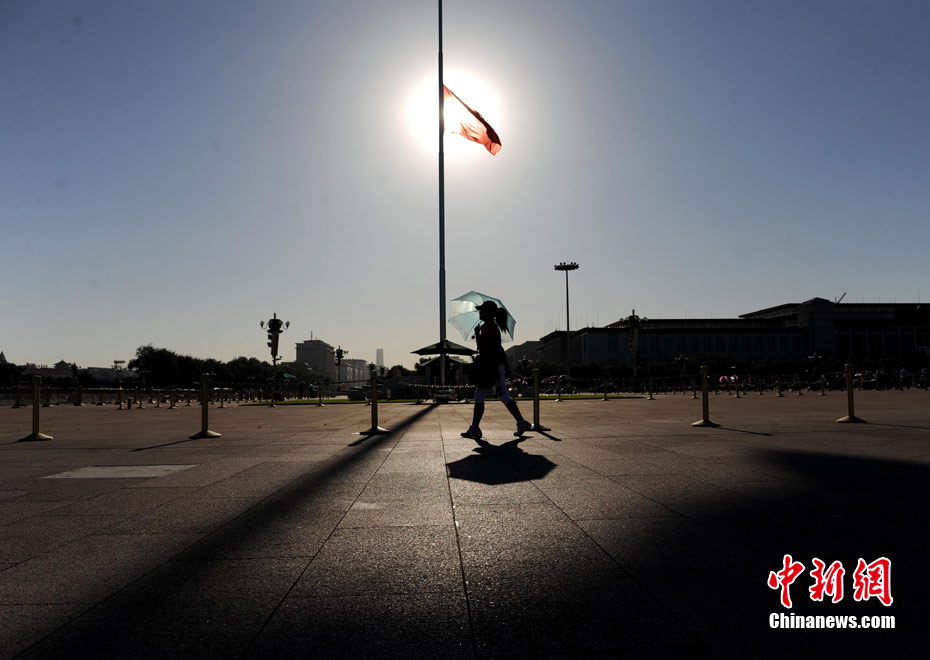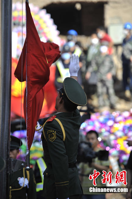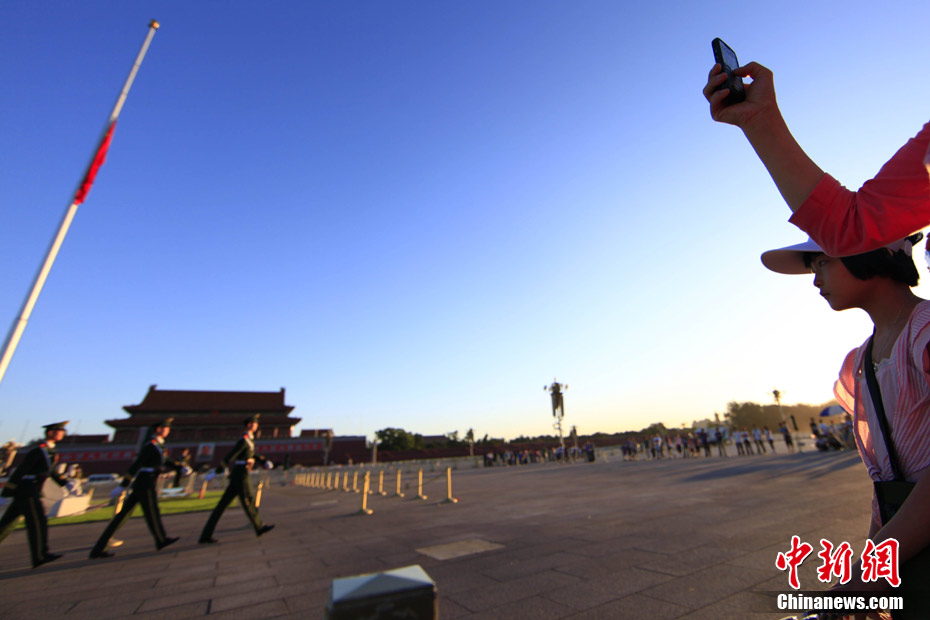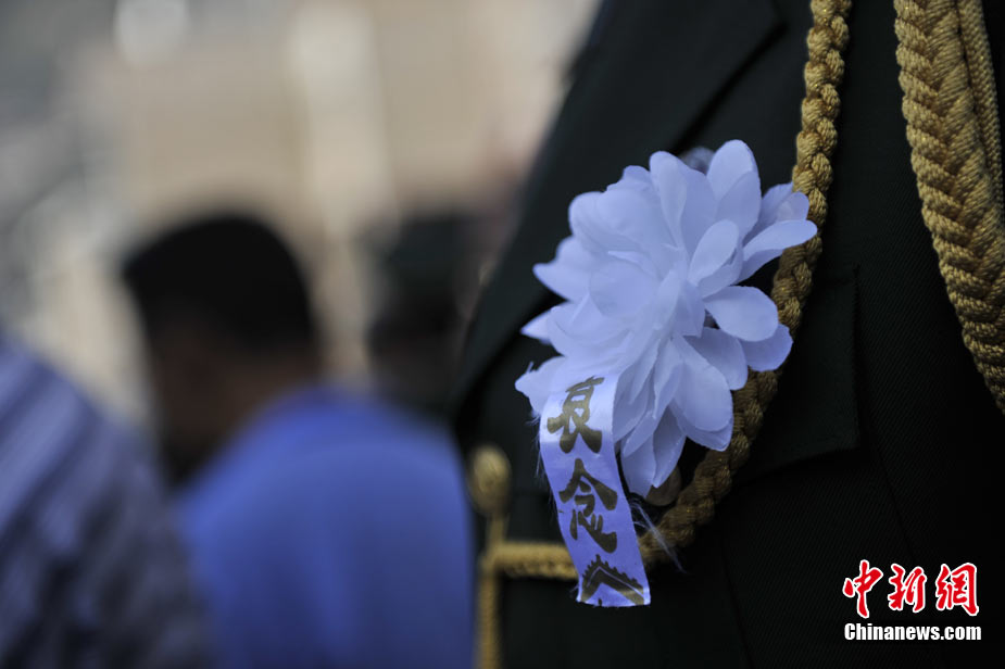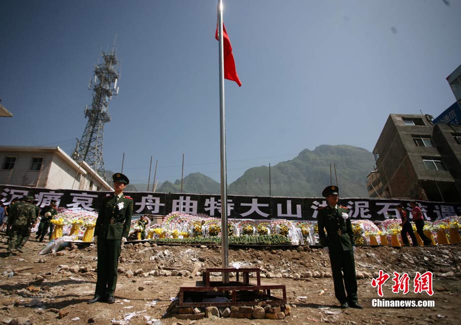8月15日5時(shí)28分,天安門廣場(chǎng)下半旗,對(duì)甘肅舟曲特大山洪泥石流遇難同胞表示深切哀悼。這是繼2008年5月汶川地震和今年4月玉樹地震后,國(guó)旗第三度為普通國(guó)民而降。中新社記者 富田 攝