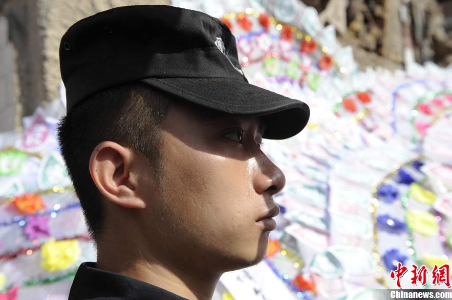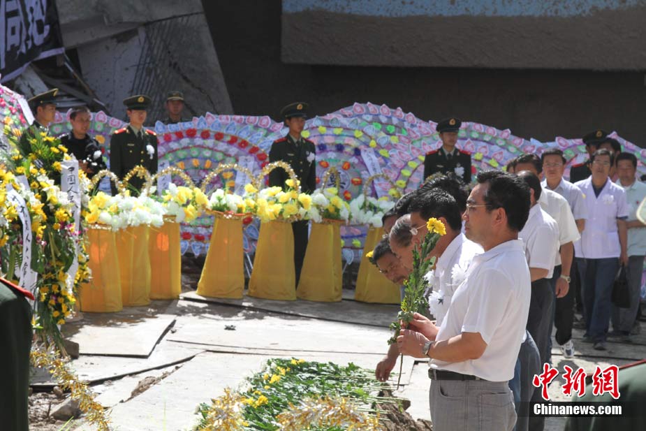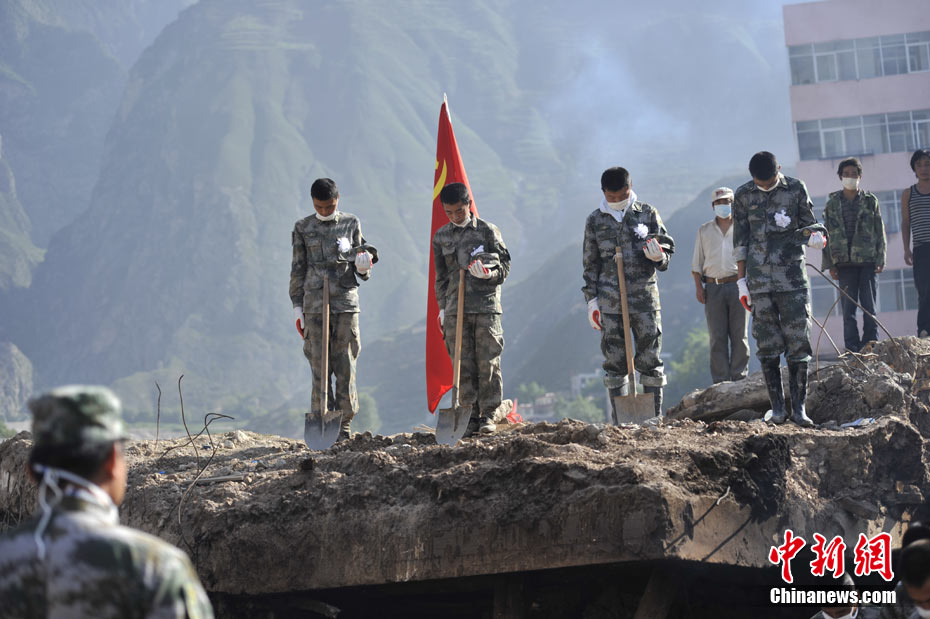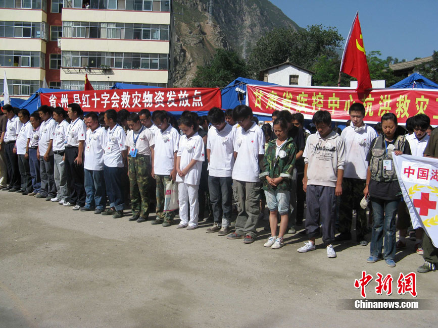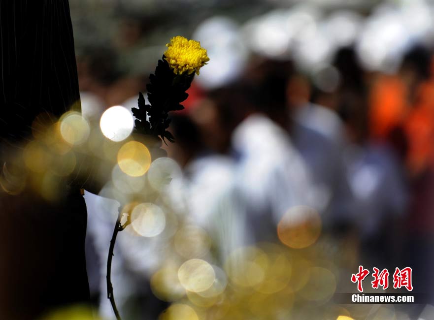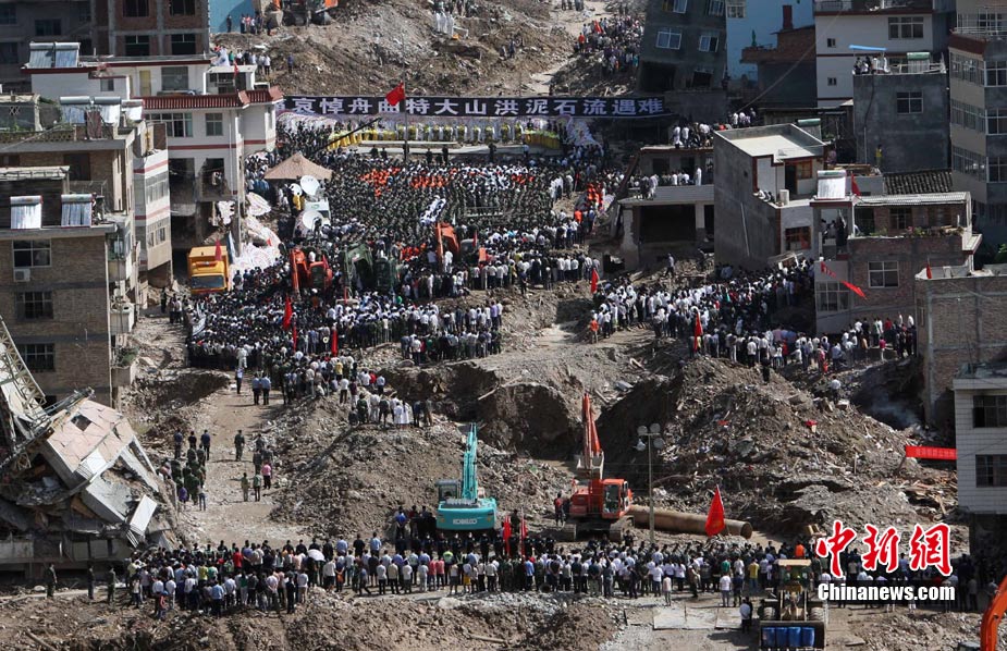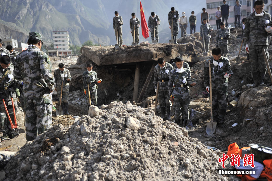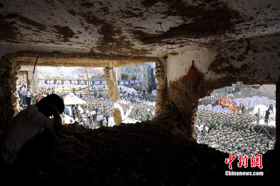 8月15日5時(shí)28分,天安門廣場(chǎng)下半旗,對(duì)甘肅舟曲特大山洪泥石流遇難同胞表示深切哀悼。這是繼2008年5月汶川地震和今年4月玉樹地震后,國(guó)旗第三度為普通國(guó)民而降。中新社記者 富田 攝
