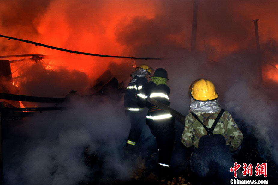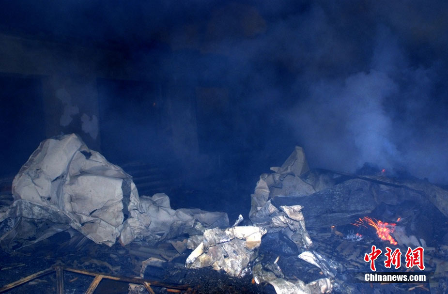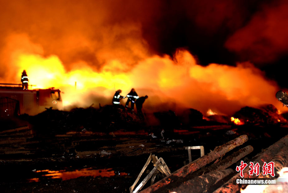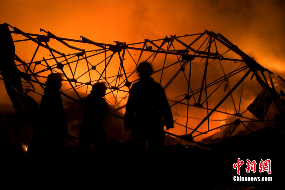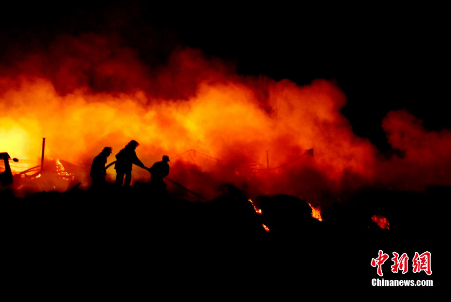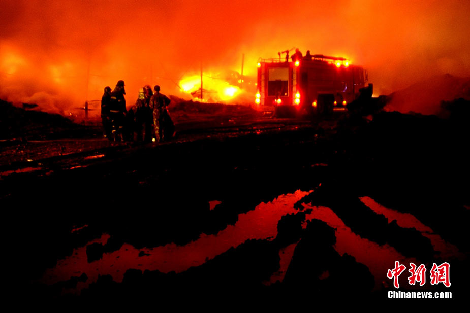 2010年8月16日9時40分左右,黑龍江省伊春市烏馬河區(qū)華利實(shí)業(yè)有限公司鞭炮廠發(fā)生持續(xù)爆炸。爆炸發(fā)生后,伊春市委、市政府緊急啟動爆炸事件、醫(yī)療救護(hù)應(yīng)急處置預(yù)案,緊急調(diào)派公安、消防、醫(yī)療救護(hù)、武警部隊(duì)、駐軍部隊(duì)2000余人及時進(jìn)行搶救,經(jīng)過8個多小時的奮力鏖戰(zhàn),因爆炸引起的火災(zāi)已全部撲滅。截至17日零時,發(fā)生在當(dāng)?shù)貫躐R河區(qū)的鞭炮廠爆炸已造成19人死亡,5人失蹤,住院傷者153人。準(zhǔn)確原因正在進(jìn)一步調(diào)查之中。圖為16日夜23時30分,武警消防部隊(duì)官兵不辭辛苦仍戰(zhàn)斗在火場一線清理殘火。陳剛 攝