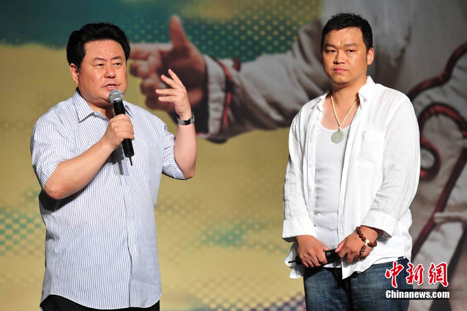 8月17日,被譽為“西部歌王”的原生態(tài)歌手高保利首張專輯《極域天音》在北京發(fā)布。著名歌唱家、藝術家王昆、徐沛東、姜昆、戴志誠到場祝賀,和高保利同為山西人的閻維文、譚晶上臺力挺老鄉(xiāng)讓高保利十分激動。圖為姜昆(中)和老搭檔戴志誠(左)現(xiàn)場不忘逗樂。中新社記者 李學仕 攝