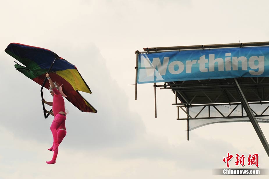 近日,一年一度的沃辛國際鳥人大賽在英國蘇塞克斯的一個(gè)海邊小鎮(zhèn)舉行。選手們不僅帶來造型奇特的飛行裝置,還身著搞笑服裝以吸引觀眾注意。