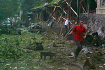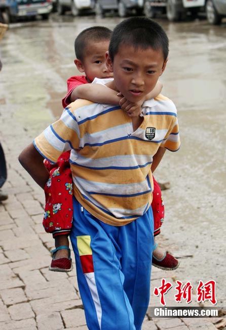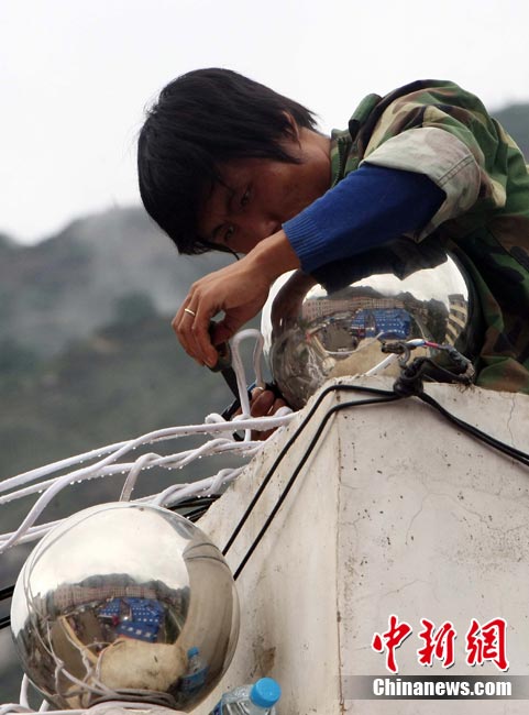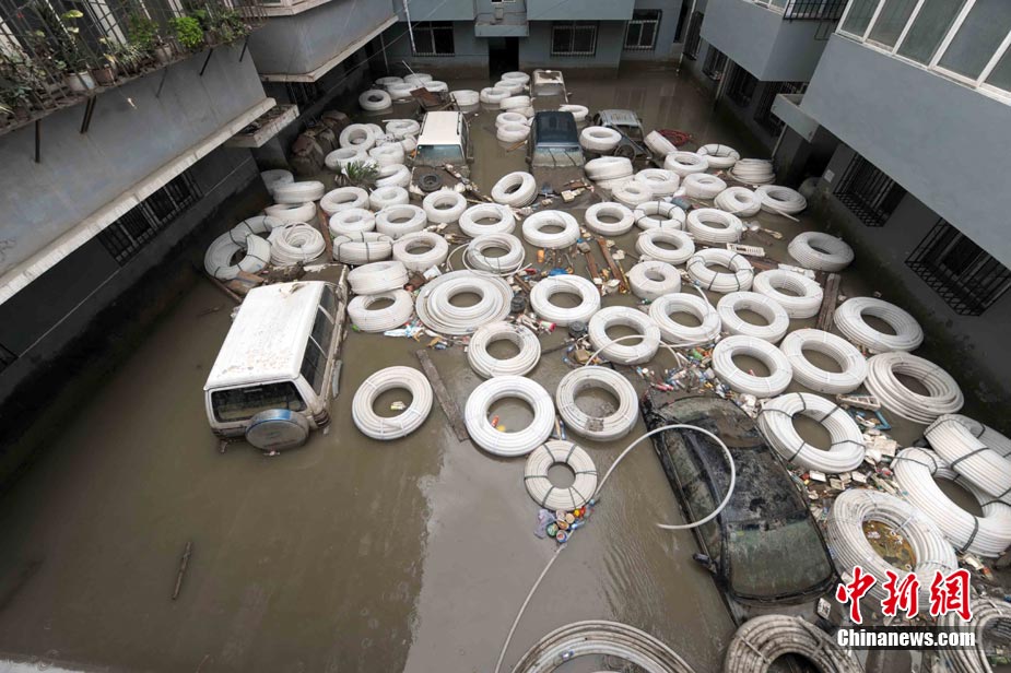 舟曲縣城因泥石流形成的白龍江堰塞湖,經(jīng)過救災(zāi)部隊(duì)官兵連續(xù)多日疏通,水位已經(jīng)明顯下降,但后續(xù)的清淤任務(wù)仍很艱巨。圖為舟曲一受災(zāi)小區(qū)內(nèi)淹沒的小轎車浮出水面。中新社記者 陳文 攝