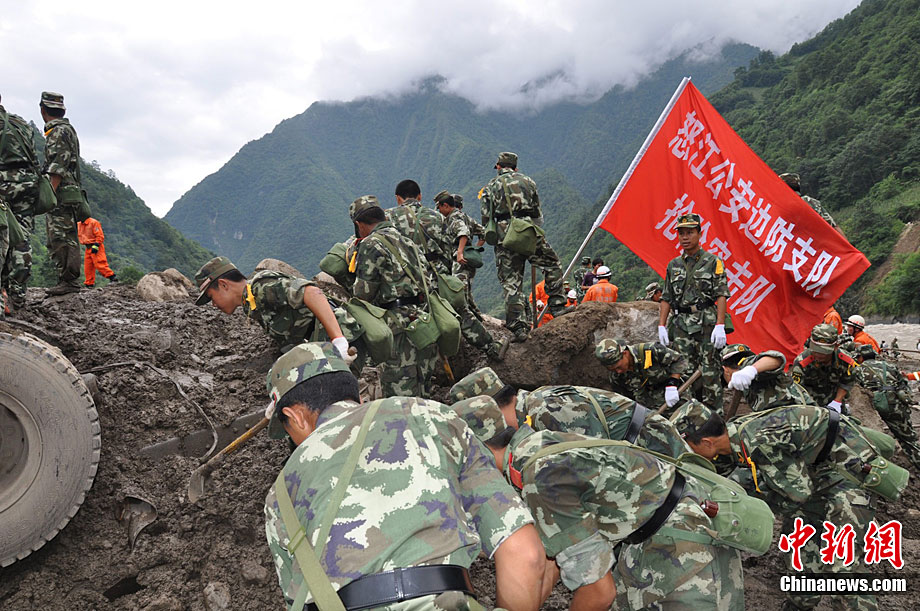 8月18日凌晨1時(shí)30分左右,怒江傈僳族自治州貢山獨(dú)龍族怒族自治縣普拉底鄉(xiāng)突發(fā)泥石流,造成重大人員傷亡和巨大財(cái)產(chǎn)損失。事故發(fā)生后,有各級(jí)部門組成的救援組立即展開搜救工作。圖為救援隊(duì)正在搜救失蹤人員。中新社發(fā) 田洪 攝