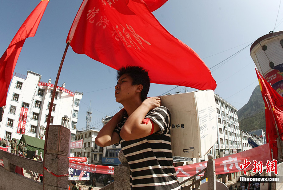 甘肅舟曲縣發(fā)生特大泥石流后,截至19日,已導(dǎo)致1364人遇難,401人失蹤,已解救1243人。前來(lái)?yè)岆U(xiǎn)救援的人群中,一群年輕的志愿者在災(zāi)難面前挺身而出,他們大多數(shù)都是“90后”出生,有的來(lái)自附近村莊,有的來(lái)自其他省市,在災(zāi)區(qū)參與賑災(zāi)宣傳、募捐、救災(zāi)物資搬運(yùn),成為搶險(xiǎn)救災(zāi)的重要組成部分。中新社記者 杜洋 攝